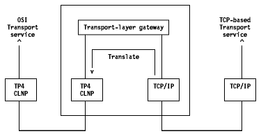 If you have an environment with the TCP transport protocol on one side and the OSI TP4 transport protocol on the other, you need a software mechanism that dynamically translates TCP packets into TP4 packets. This approach is considered to be wrong because no applications support TCP on one end and TP4 on the other, and because the addresses change on either part of the gateway, which involves loss of directories services.