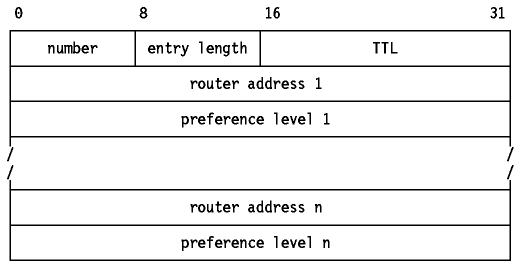 These two messages are used if a host or a router supports the Router Discovery Protocol. The use of multicasting is recommended, but broadcasting may be used if multicasting is not supported on an interface. Routers periodically advertise their IP addresses on those subnets where they are configured to do so. Advertisements are made on the all-systems multicast address (224.0.0.1) or the limited broadcast address (255.255.255.255). The default behavior is to send advertisements every 10 minutes with a TTL value of 1800 (30 minutes). Routers also reply to solicitation messages they receive. They may reply directly to the soliciting host, or they may wait a short random interval and reply with a multicast. Hosts may send solicitation messages when they start until they receive a response. Solicitation messages are sent to the all-routers multicast address (224.0.0.2) or the limited broadcast address (255.255.255.255). Typically, three solicitation messages are sent at 3-second intervals. Alternatively a host may wait for periodic advertisements. Each time a host receives an advertisement, it updates its default router if the new advertisement has one with a higher preference value and sets the TTL timer for the entry to match the value in the advertisement. When the host receives a new advertisement for its current default router, it resets the TTL value to that in the new advertisement. This also provides a mechanism for routers to declare themselves unavailable: they send an advertisement with a TTL value of zero.
