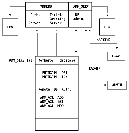 The MVS implementation is very similar to that of the VM. Please refer to VM. The naming differences are: MVSKERB address space instead of VMKERB; ADM@SERV virtual machine instead of ADM_SERV virtual machine.