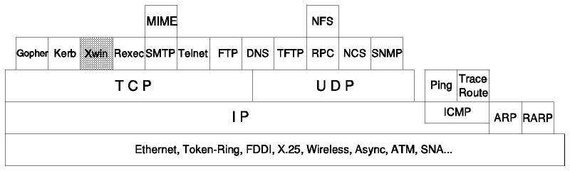 An X Window System protocol can be implemented on top of any reliable byte stream transport mechanism. It uses a simple block protocol on top of the stream layer. Four kinds of messages are used: