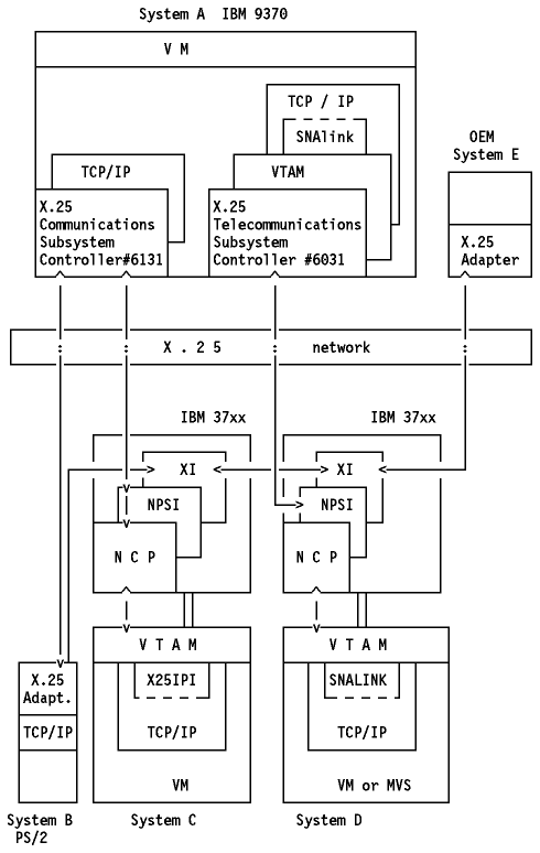 The provides support for non-SNA users. It is designed to support communications between hosts running TCP/IP over an X.25 network. For more details, please refer to IBM 9370 Information System X.25 Communications Subsystem Description.