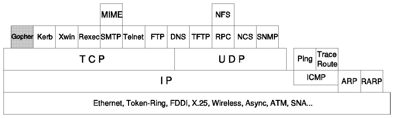 The Gopher protocol was developed at the University of Minnesota and is available under RFC 1436. Its state is informational.